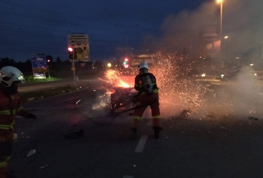 "Sebaik tiba di lokasi kereta terbabit sedang terbakar keseluruhan kenderaan dan tindakan awal dilakukan Komander Operasi memadam kebakaran terlebih dahulu.