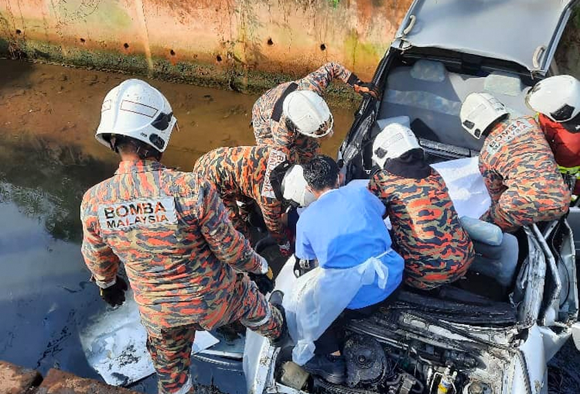 “Setibanya di lokasi kejadian, pasukan bomba mendapati nahas melibatkan sebuah kereta Perodua Kancil yang terbabas masuk ke dalam parit yang berkedalaman 7 meter.