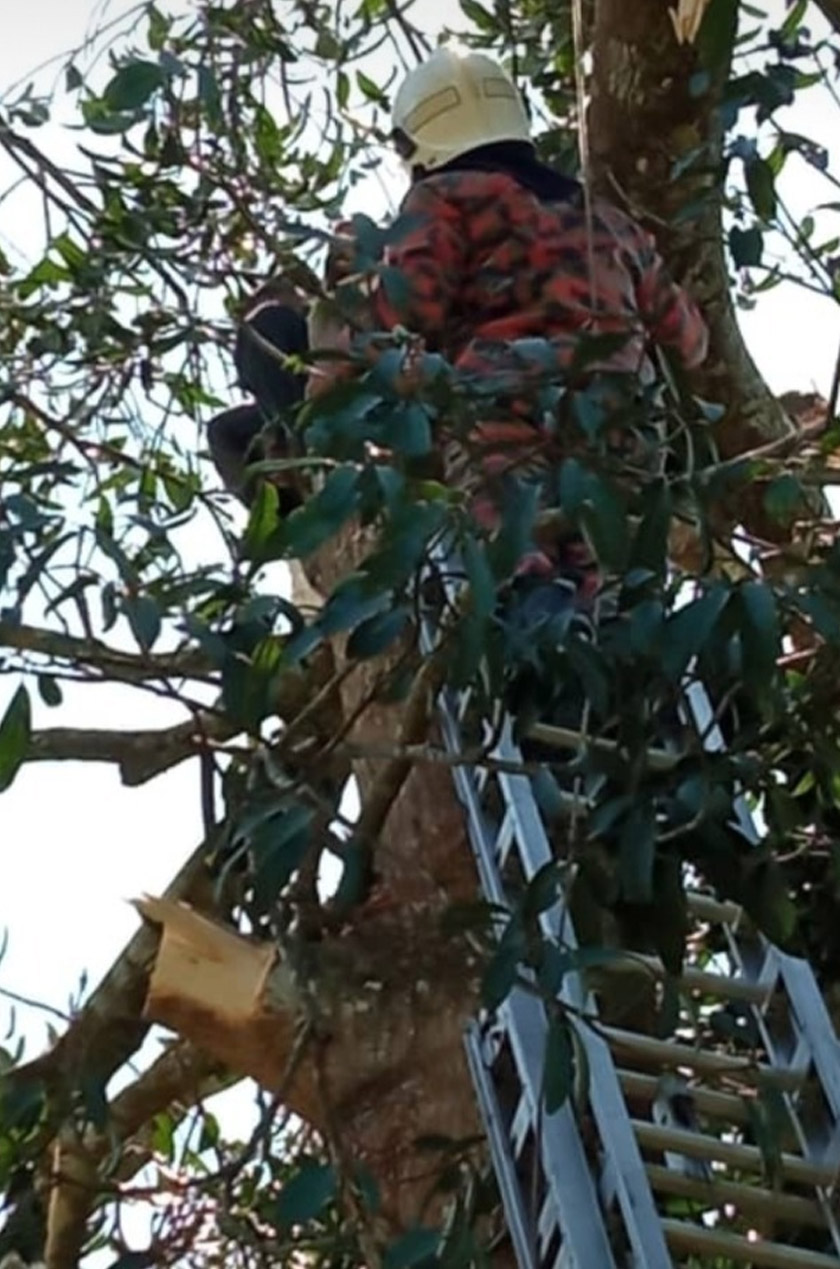 “Sebaik tiba pihaknya mendapati lelaki itu tersepit pada ketinggian kira-kira sembilan meter dan pihaknya terpaksa menggunakan khidmat kren kerana kedudukan pokok yang terlalu tinggi.