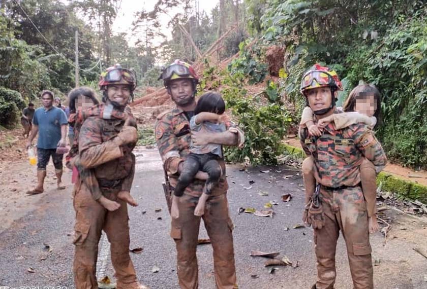 JELEBU: Lima kanak-kanak antara 19 mangsa diselamatkan Jabatan Bomba dan Penyelamat Malaysia (JBPM) dalam insiden tanah runtuh di Jalan Genting Peras, Kuala Klawang di sini.