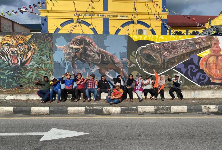 "Kami berkampung demi menyiapkan mural yang memaparkan ikon negeri ini, ia seperti labu sayong, batik, congkak, harimau Malaya.