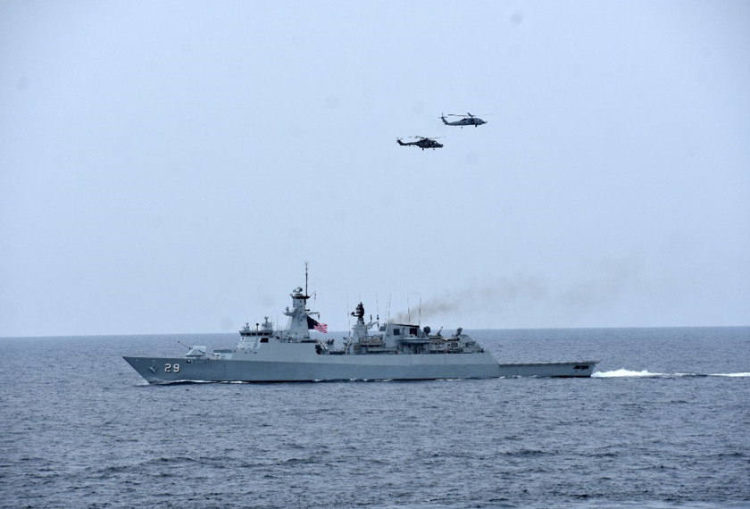 "Mendepani pandemik, kedua-dua angkatan laut terus mempamerkan komitmen menerusi penglibatan 3 buah aset oleh TLDM, iaitu KD LEKIU, KD JEBAT serta helikopter SUPER LYNX.