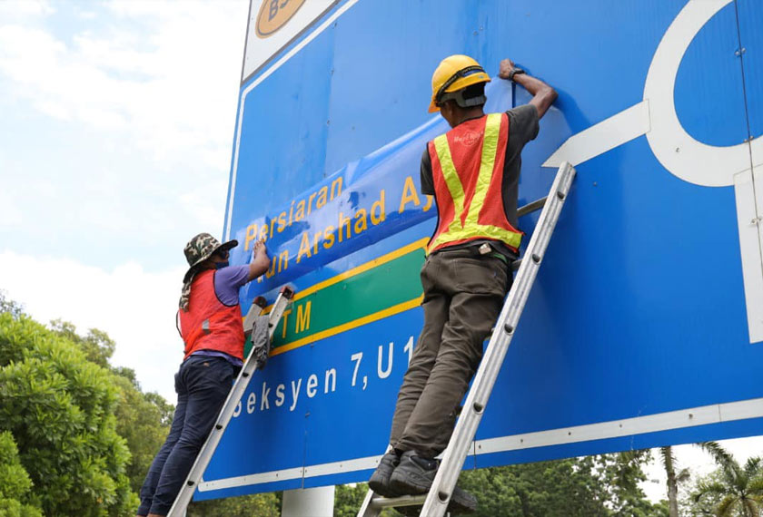 SHAH ALAM: Majlis Bandaraya Shah Alam (MBSA) menjalankan kerja penukaran nama nama Persiaran Institut di Seksyen 1, di sini ditukar kepada Persiaran Tun Arshad Ayub pada Selasa.