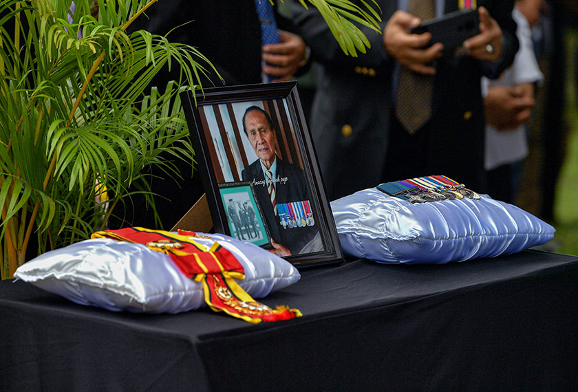 Uggah juga menyampaikan eulogi untuk mendiang Awang yang merupakan satu-satunya penerima Pingat George Cross di Malaysia, sebelum kerandanya dibawa ke Makam Pahlawan untuk disemadikan.
