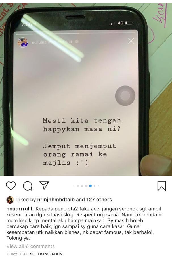 “Kepada pencipta fake account, jangan seronok sangat ambil kesempatan dengan situasai sekarang. Respect orang sama.