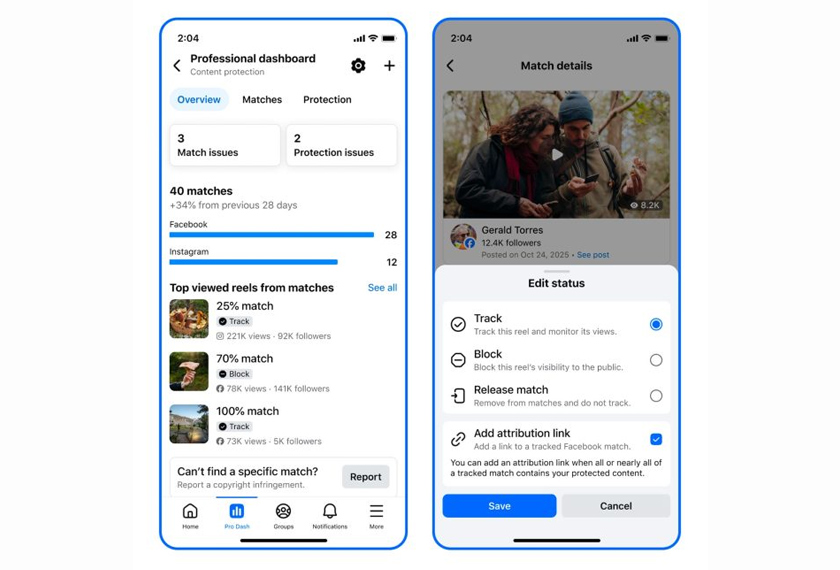 Pengguna diberikan pilihan untuk menyertai Content Protection apabila memuat naik reels ke Facebook. Selepas itu Meta akan mengesan sekiranya video sama dimuat naik oleh akaun lain.