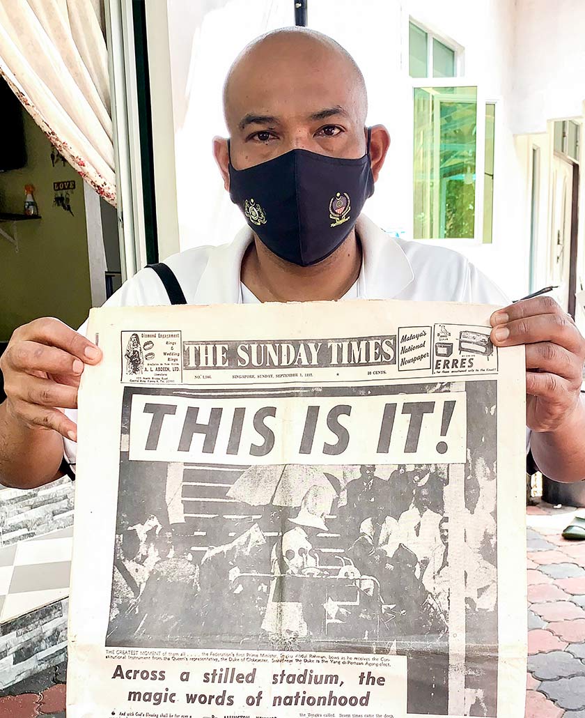 PASIR MAS: "Meskipun pernah ditawarkan RM20,000 oleh seorang pembeli beberapa tahun lalu, saya tidak sanggup menjual kerana percaya nilai khazanah ini lebih tinggi," kata Mohd Tarmizi Ismail, 45, yang memiliki satu nashkah akhbar The Sunday Times bertarikh 1 September 1957, iaitu sehari selepas pengisytiharan kemerdekaan negara.