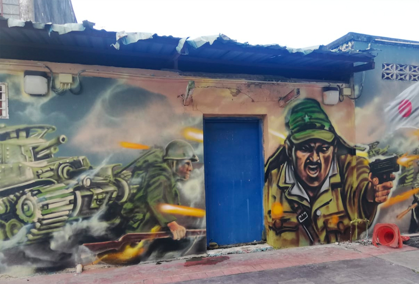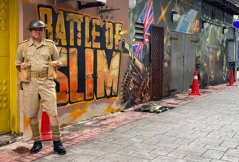 Mural yang menggambarkan kisah Battle of Slim River atau Pertempuran di Slim River sewaktu Perang Dunia Kedua itu merupakan sentuhan artis tempatan berbakat besar, Mohd Afiq Othman atau dikenali sebagai Bop Sopan.