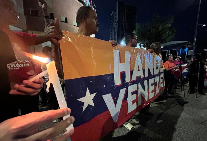 KUALA LUMPUR: Puluhan warga kota berhimpun menyalakan lilin menyatakan sokongan kepada Venezuela dan membantah tindakan Amerika Syarikat.