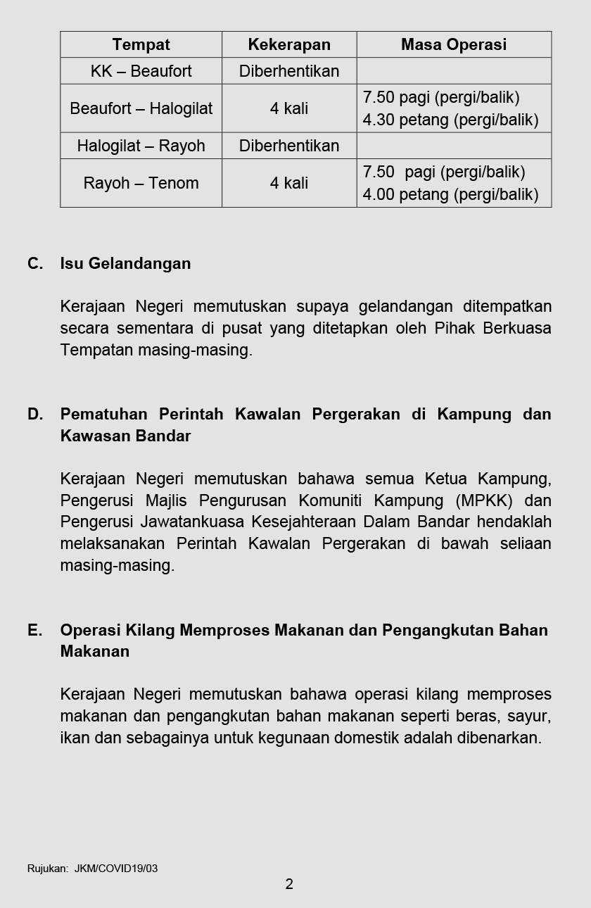 Sementara itu, dalam perkembangan berasingan, beliau berkata, pihaknya turut memutuskan semua Ketua Kampung, Pengerusi Majlis Pengurusan Komuniti Kampung (MPKK) dan Pengerusi Jawatankuasa Kesejahteraan Dalam Bandar perlu membantu kerajaan melaksanakan Perintah Kawalan Pergerakan di bawah seliaan masing-masing.