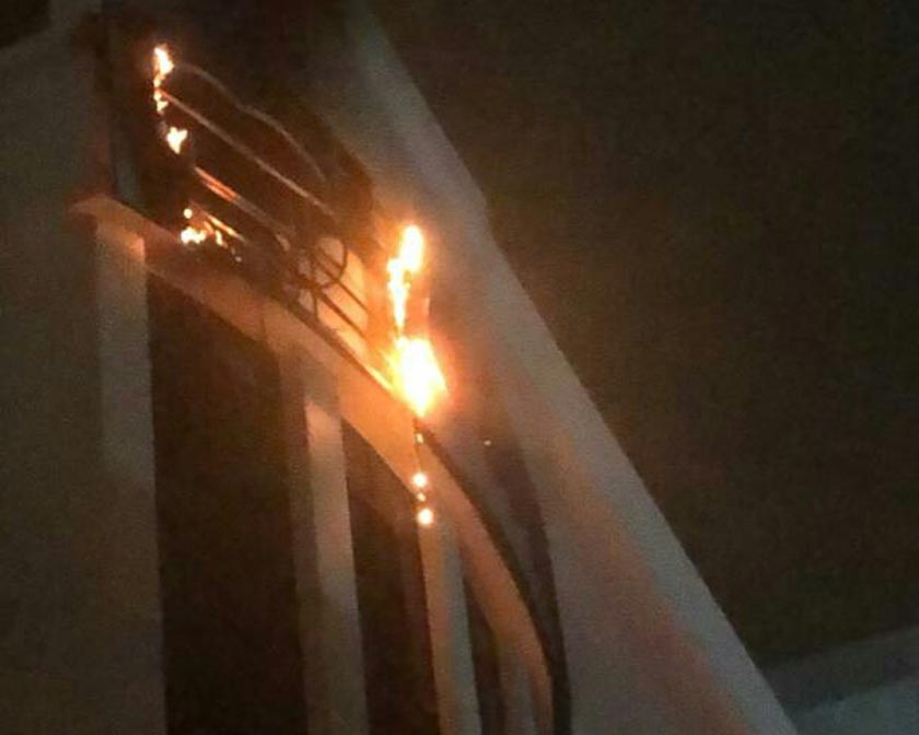 Setiba di lokasi, beliau mendapati sebuah papan tanda berlampu di luar bangunan itu sedang marak dan mengeluarkan percikan api.