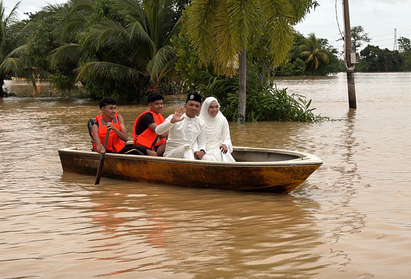 Katanya, walaupun sedih dengan apa yang berlaku namun dia dan suami menganggap hari perkahwinan mereka menjadi sejarah kerana terpaksa diraikan dalam keadaan banjir.