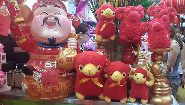 Menurut seorang peniaga kedai hiasan, Chong Poh Fah, barang-barang hiasan untuk perayaan Tahun Baru Cina yang mempunyai gambar dan patung perhiasan kambing merupakan barangan yang paling laris dijual tahun ini.
