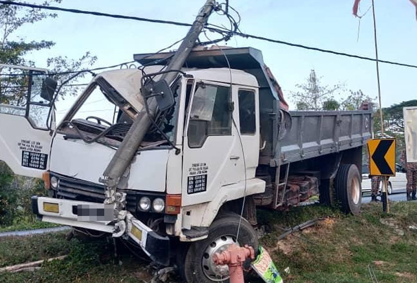 Setibanya di lokasi, didapati lori terbabit dalam keadaan remuk di bahagian depan akibat merempuh tiang elektrik di lokasi kejadian.