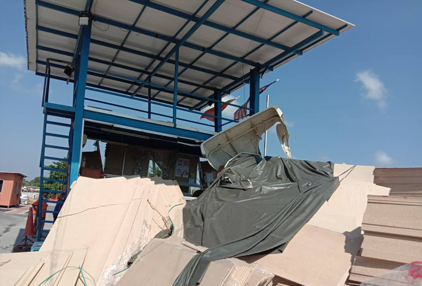 "Setibanya di lokasi mendapati, kemalangan membabitkan sebuah lori kontena yang merempuh dan menghempap sebuah pondok kawalan," katanya dalam satu kenyataan hari ini.