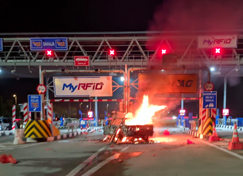 "Setibanya jentera di lokasi mendapati sebuah kereta Toyota musnah terbakar sebanyak 80 peratus akibat melanggar pembahagi tol.
