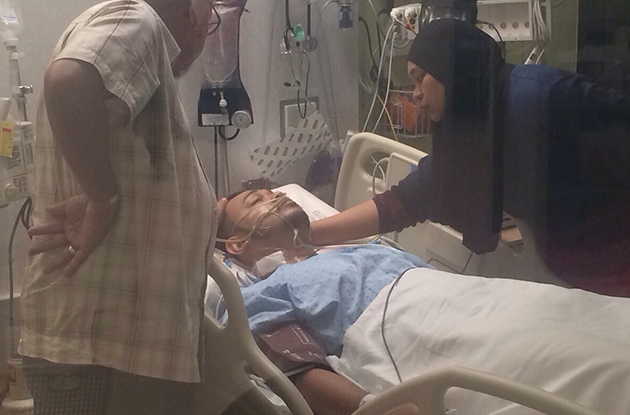 Antashah selepas sehari menjalani pembedahan pemindahan hati di HUS - Sumber Foto Antashah