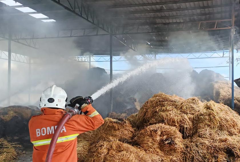 Pemilik premis berkenaan, Azli Che Ahmad, 44, berkata, dalam kejadian kira-kira jam 10 pagi itu, api marak dengan cepat membakar hampir keseluruhan jerami yang berada di dalam gudang terbabit.