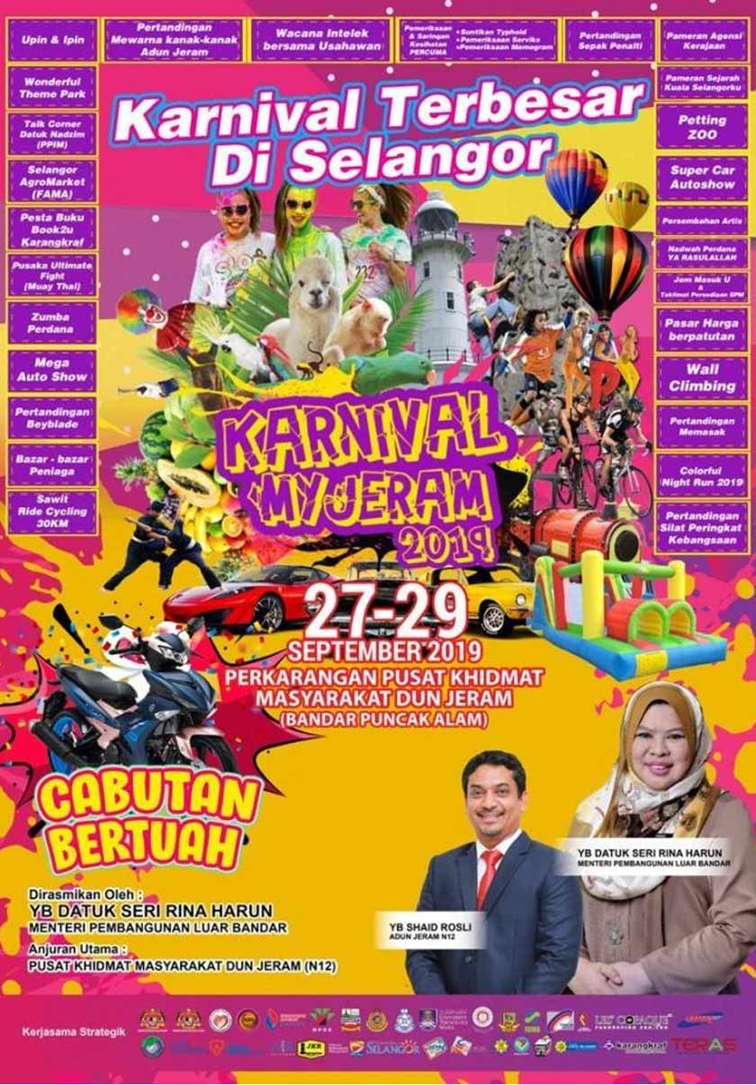 Oleh itu jelasnya, Karnival MyJeram 2019 yang akan diadakan ada 27 hingga 29 September ini di pekarangan Pusat Khidmat Masyarakat DUN Jeram, Bandar Puncak Alam, Selangor bakal menjadi karnival terbesar di Selangor sempena Sambutan Hari Kemerdekaan dan Hari Malaysia.