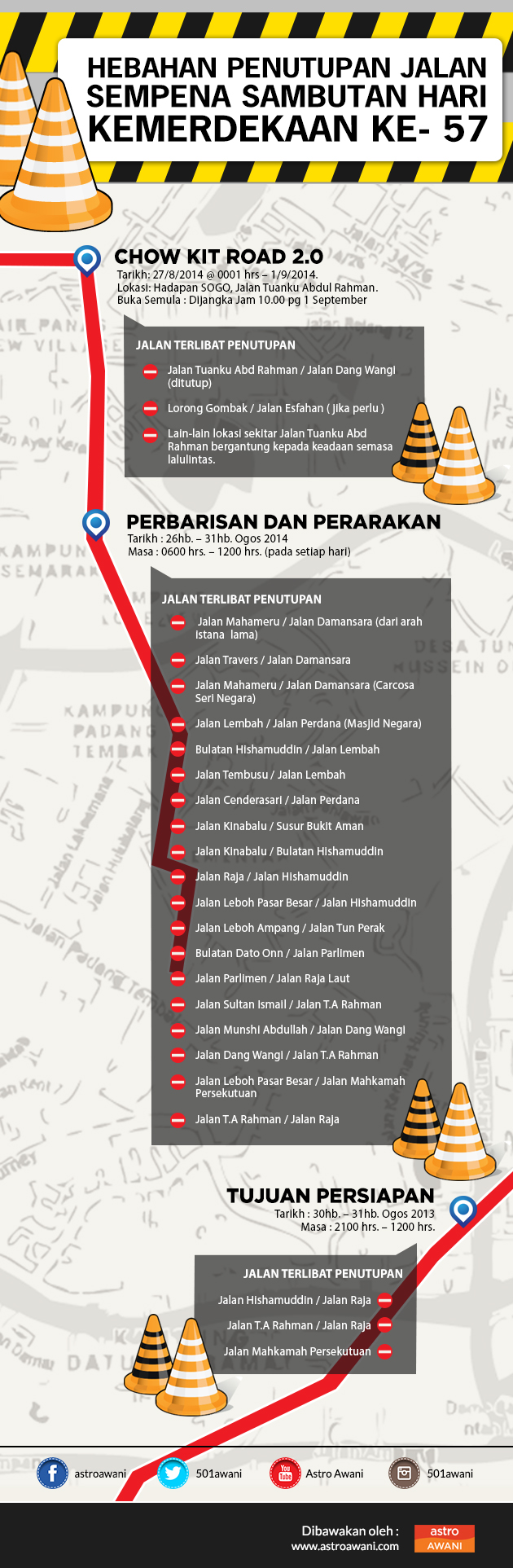 Jalan Tuanku Abdul Rahman pula ditutup pada esok sehingga 1 September, 2014 sempena sambutan kemerdekaan itu.