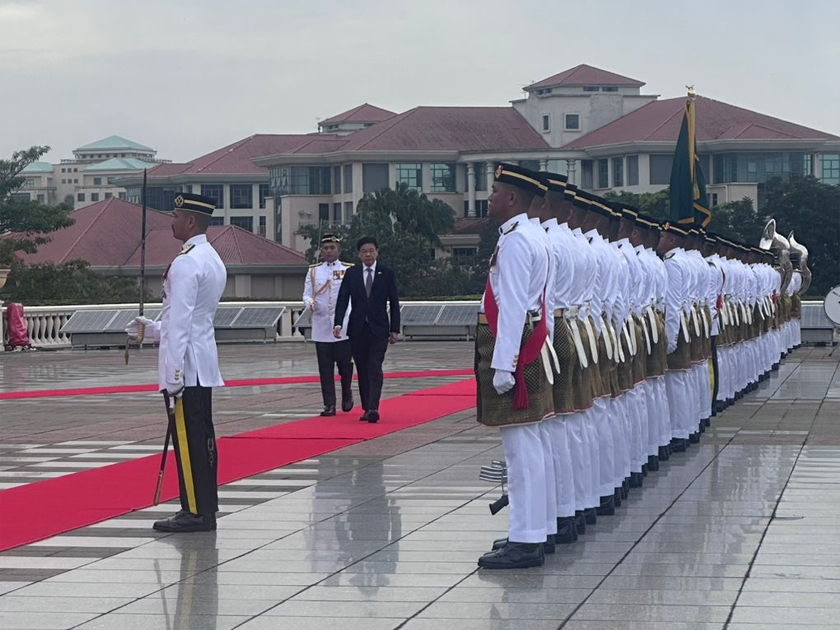 PUTRAJAYA: Perdana Menteri Singapura, Lawrence Wong diberikan sambutan rasmi di Kompleks Perdana Putra, Putrajaya, hari ini, sebelum mengadakan mesyuarat delegasi Pemukiman Pemimpin Malaysia-Singapura bersama Perdana Menteri, Datuk Seri Anwar Ibrahim.