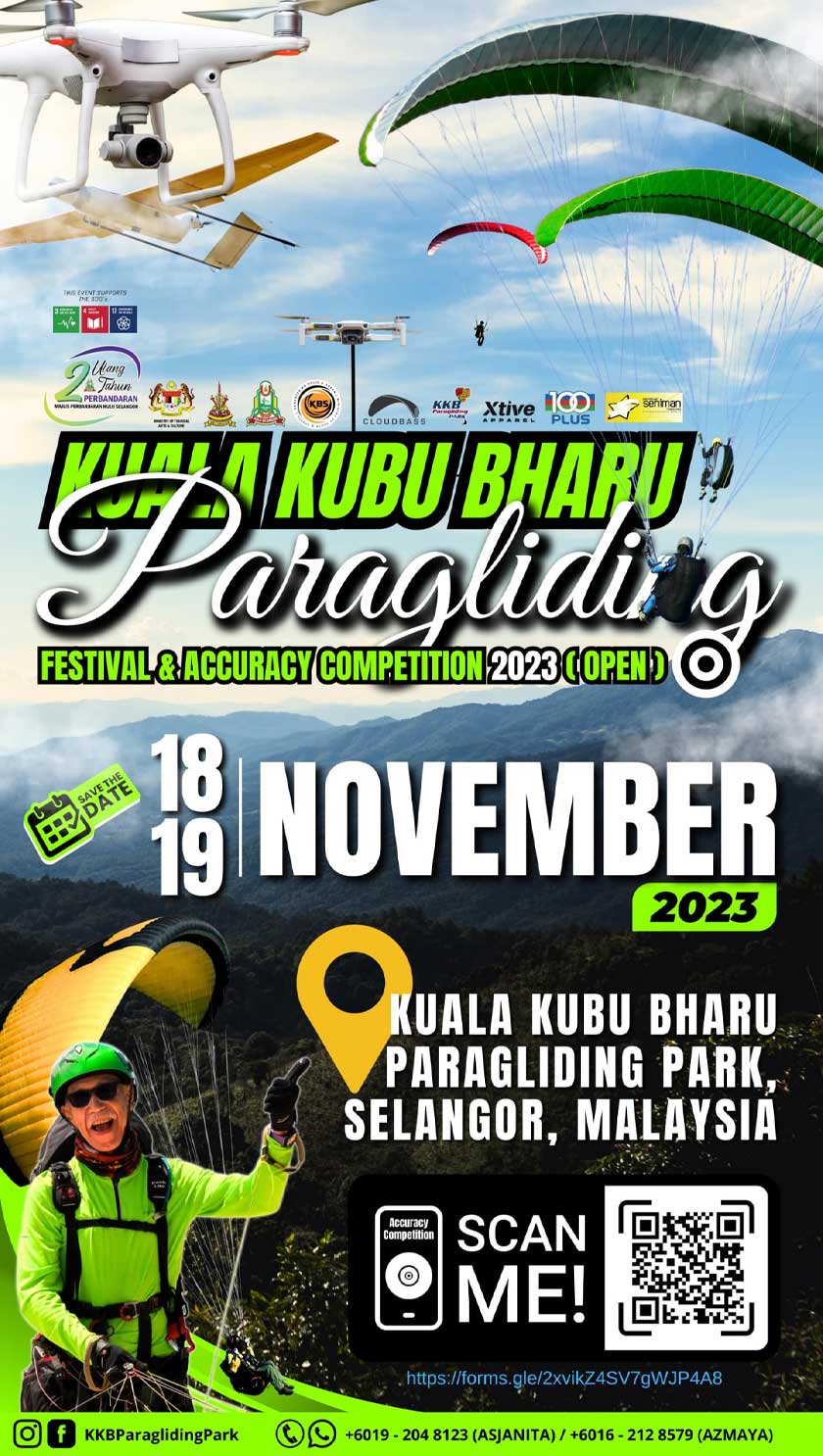 Katanya, Pesta Paragliding Kuala Kubu Bharu dan Pertandingan Ketepatan Mendarat 2023 (Terbuka) menampilkan CloudBass sebagai rakan teknikal dan pengurusan koordinator yang mendapat sokongan Kementerian Belia Dan Sukan (KBS) dan Persatuan Seniman Malaysia sebagai rakan strategik.