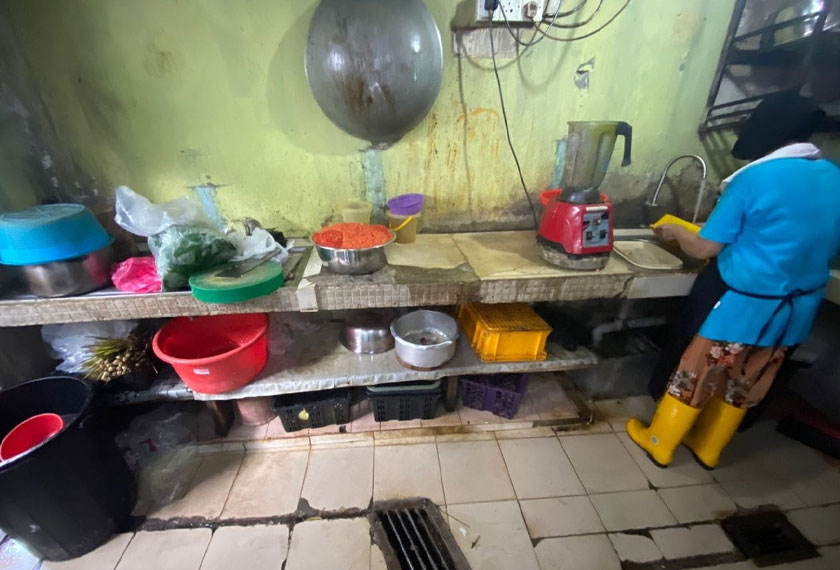 "Premis terbabit dikenakan tindakan kerana gagal mematuhi kehendak kesihatan antaranya lantai dan dinding di ruang dapur kotor dan berdaki hitam, meletakkan makanan mentah di atas lantai dan terdapat kesan hurungan atau najis tikus di bahagian dapur.