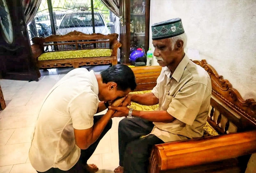 Sebelum keluar, Baddrol mendapatkan restu dan doa daripada ayahnya memohon dipermudahkan urusan hari ini.
