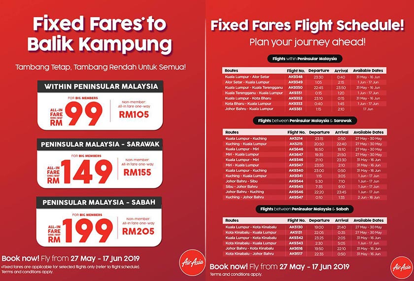 BACA: AirAsia tawar penerbangan tambahan, tambang tetap untuk balik kampung