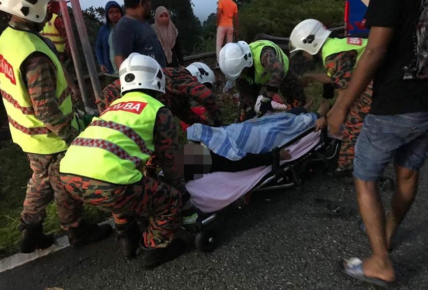 “Sebaik tiba di lokasi kejadian, MPV yang dipandu melalui selekoh berbukit dipercayai hilang kawalan dan melanggar besi penghadang jalan dan terjatuh ke dalam gaung.