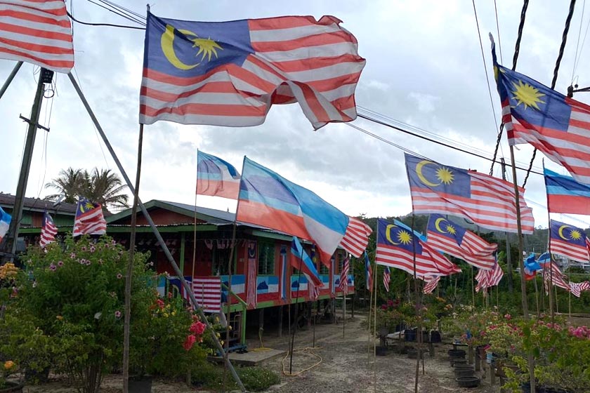 Cukup mengujakan semangat tuan rumah yang sanggup mengibarkan Jalur Gemilang dan bendera Sabah di setiap pelusuk dinding luar, pintu, pagar dan halaman rumah.