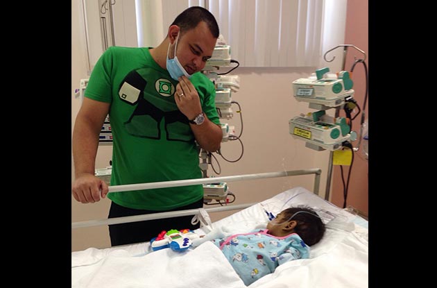 Antashah semakin sihat namun badannya sedikit bisa selepas pembedahan pemindahan hati di HUS. -Gambar Antashah