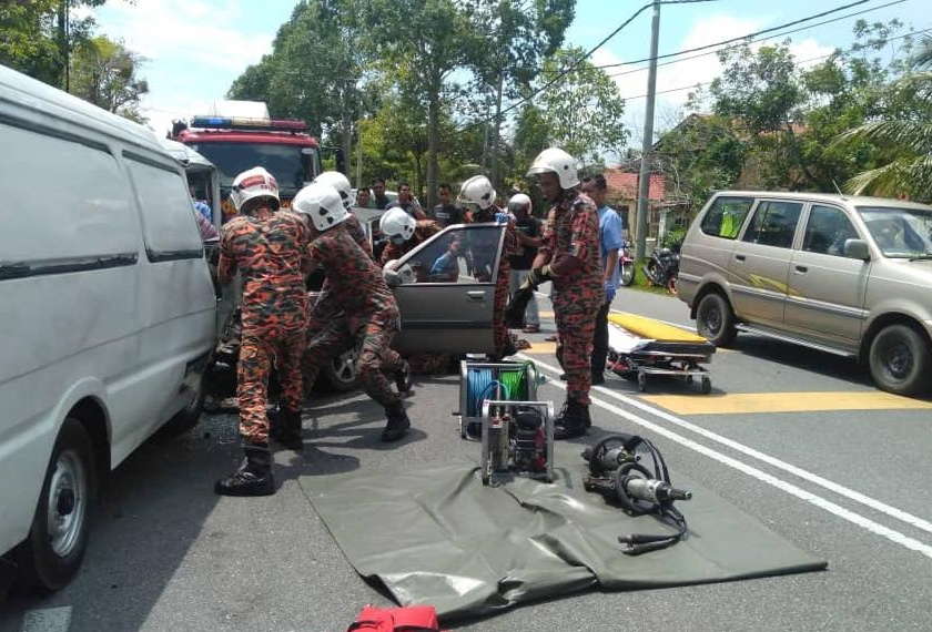 Jelas Mohamadul Ehsan, anggotanya terpaksa memotong besi dengan menggunakan ‘Rescue Tools’ untuk mengeluarkan ketiga-tiga mangsa yang tersepit.