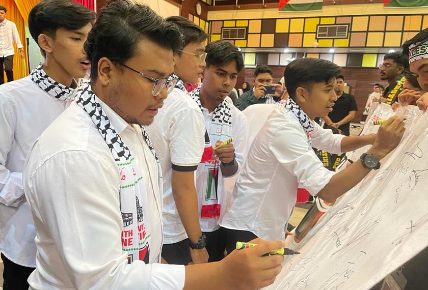 IPOH: Lebih 2,000 pelajar dan kakitangan Politeknik Ungku Omar (PUO) menyertai Himpunan Solidariti Politeknik Ungku Omar Bersama Palestin di Dewan Jubli Perak, PUO di sini pada Jumaat.
