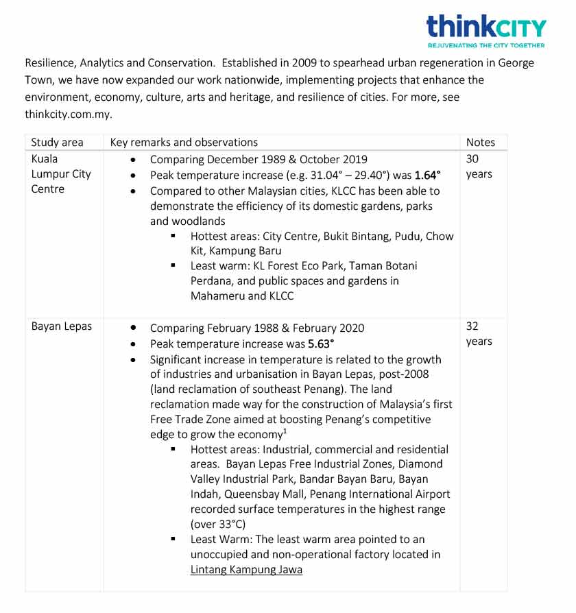 Sementara itu, Pengarah Urusan Think City, Hamdan Abdul Majeed memberitahu, tujuan kajian itu dijalankan adalah bagi memberi gambaran jelas mengenai perubahan suhu di bandar raya yang pesat membangun.