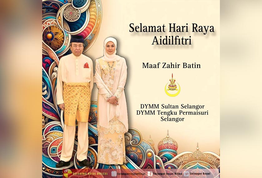 Baginda bersama Tengku Permaisuri Selangor, Tengku Permaisuri Norashikin mengucapkan Selamat Hari Raya Aidifitri kepada seluruh umat Islam di Selangor.