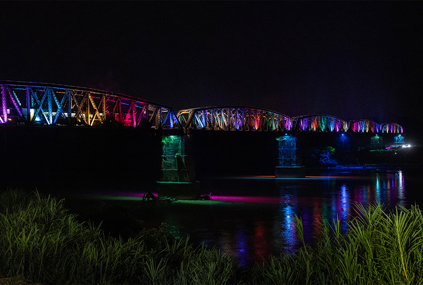 Gimik perasmian majlis itu dimulakan dengan pencahayaan tugu rangka Jambatan Guillemard manakala kereta api dari Tumpat ke Kuala Lumpur yang melalui kawasan tersebut diiringi percikan bunga api lebih 15 minit.
