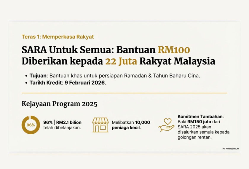 "SARA tahun ini untuk semua rakyat, iaitu 22 juta rakyat Malaysia yang berusia 18 tahun ke atas kita akan kreditkan pada 9 Februari ini," katanya.