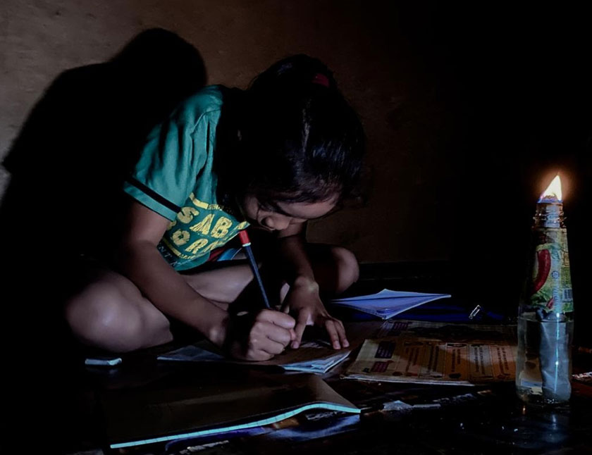 "Oleh kerana (hidup) kami di sini tidak mencukupi setiap bulan, saya tidak mampu membeli genset atau solar. Jika ada dua benda itu akan memudahkan anak-anak belajar.