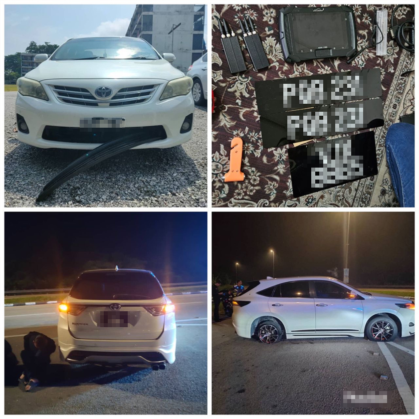 Polis turut menjumpai peralatan yang digunakan untuk mencuri kenderaan, termasuk peralatan elektronik di dalam kenderaan tersebut, yang juga disyaki dicuri.
