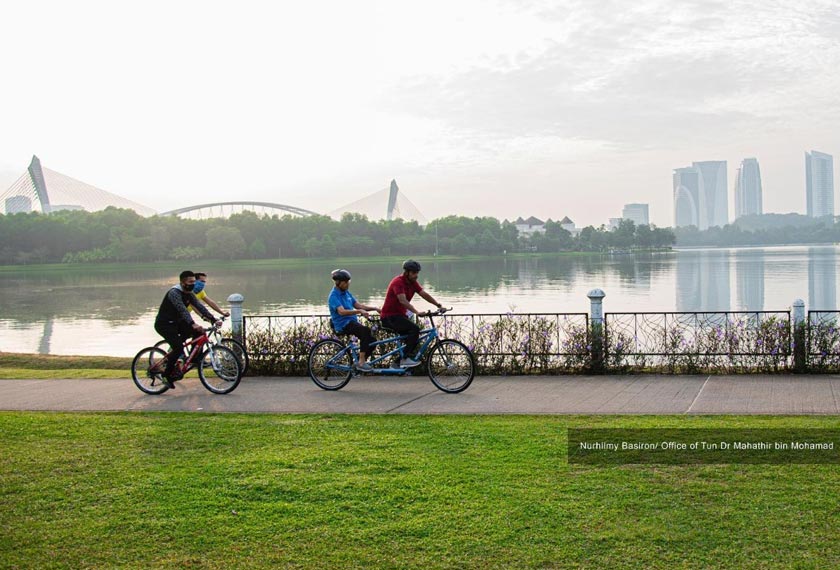 PUTRAJAYA: Selepas beberapa bulan tidak menjalani aktiviti riadah, pagi ini, Tun Dr Mahathir Mohamad mengambil kesempatan mengayuh basikal di Tasik Putrajaya.