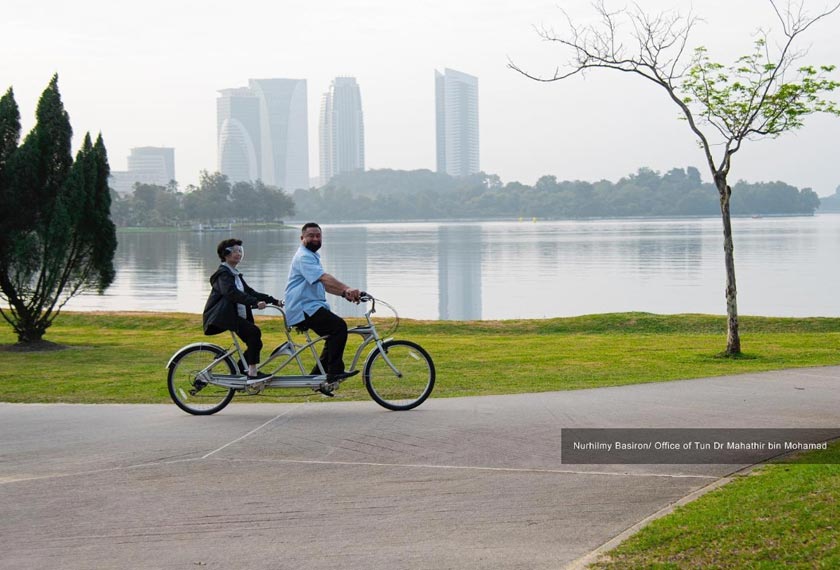 Turut mengiringi hantaran berkenaan ialah beberapa keping foto Dr Mahathir yang turut disertai isteri beliau, Tun Dr Siti Hasmah Mohamad Ali berbasikal mengelilingi tasik popular di pusat pentadbiran kerajaan Persekutuan itu.