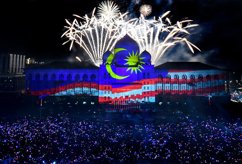 Mereka yang diiringi Menteri Wilayah Persekutuan, Khalid Abd Samad, menyertai puluhan ribu warga Putrajaya menyaksikan persembahan grand projection mapping menerusi tujuh segmen bertemakan Beautiful Malaysia.