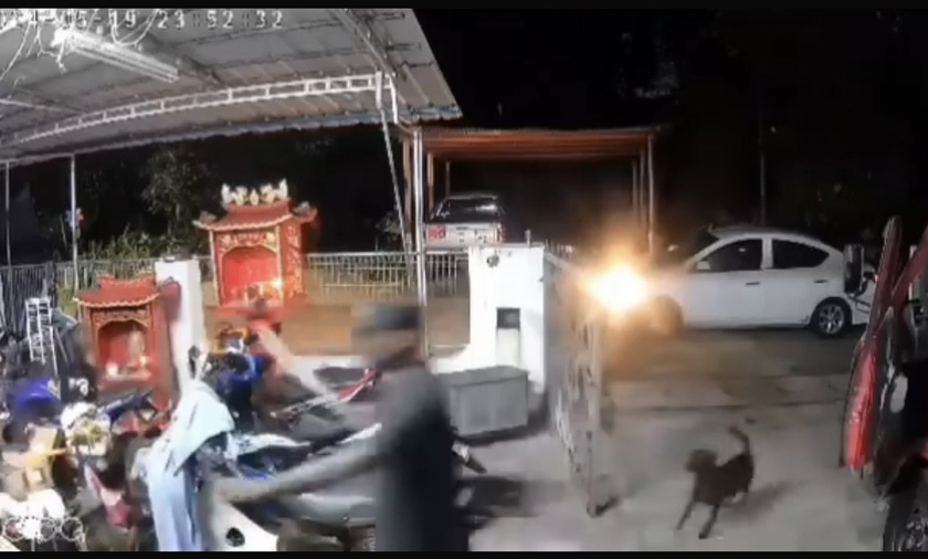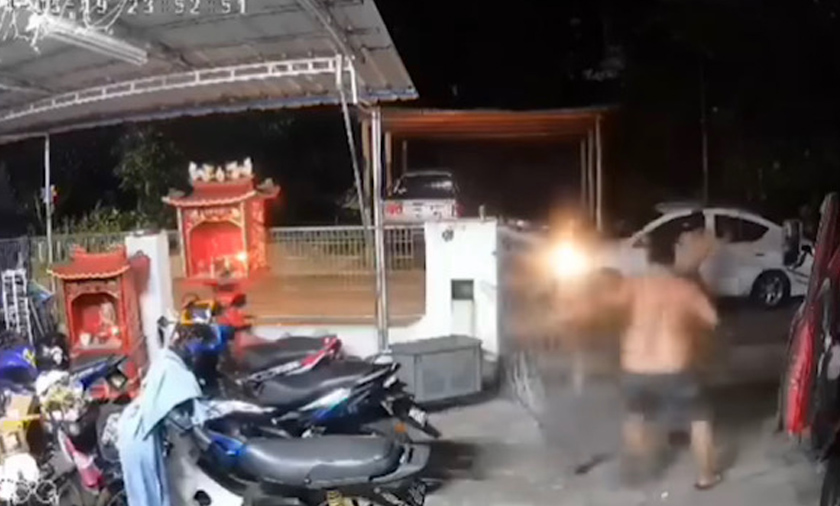 Video itu memaparkan kejadian seorang lelaki diserang suspek yang menaiki kereta warna putih dengan bersenjatakan parang di hadapan rumahnya.