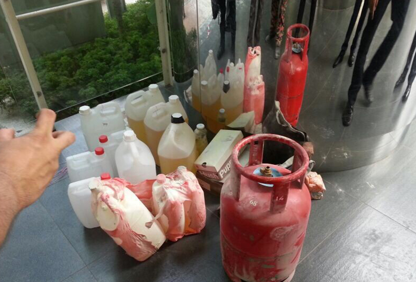 Barang-barang seperti tong gas, botol berisi petrol dan kotak mercun turut dijumpai polis di dalam kereta Perodua Viva wanita tersebut.