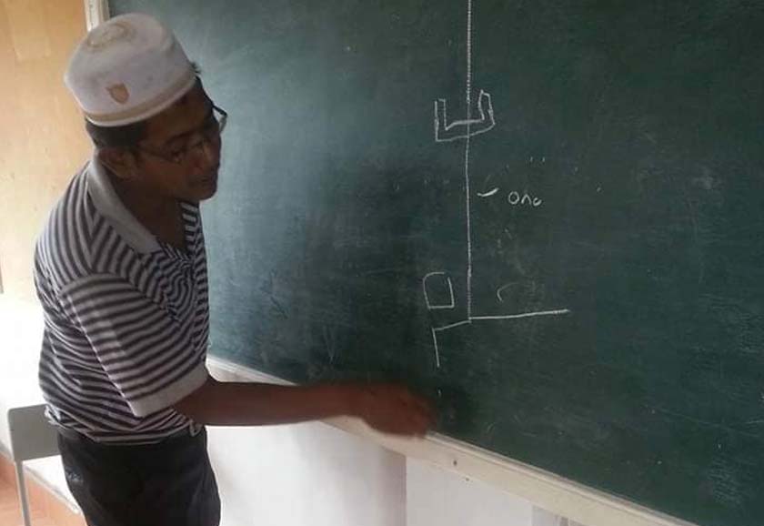 "Dari segi pertuturan mereka akan mengeja mengikut bahasa mulut, contoh ayer (air), carpoo (kapur) dan ada juga bercampur dengan bahasa Thai kerana bahasa utama di sekolah kerajaan adalah bahasa Thai... dan perkara ini yang saya cuba perbetulkan (ajar) sedikit demi sedikit," kata bapa kepada tiga orang anak itu.