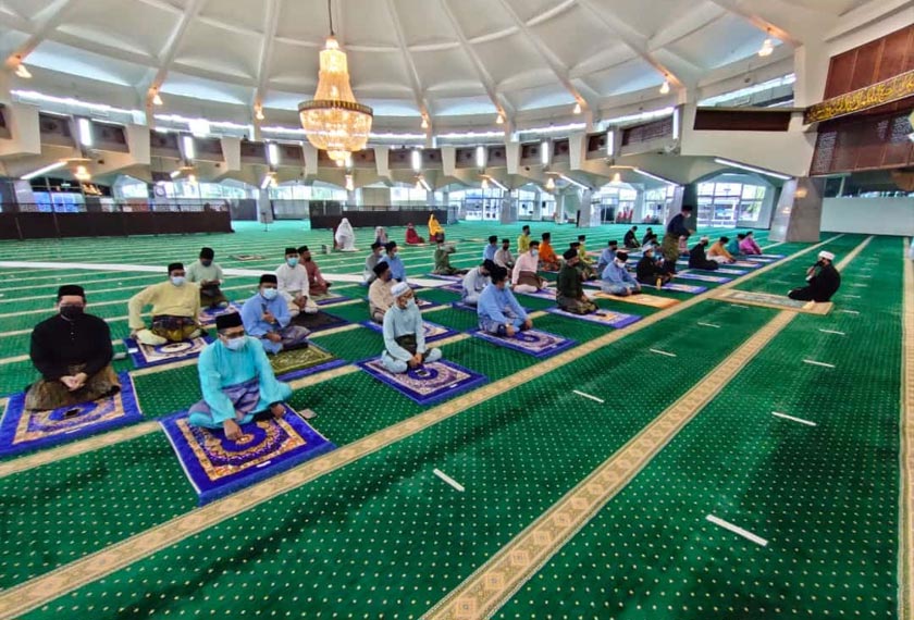 Solat sunat serta khutbah Aidilfitri yang bertemakan ‘Keriangan Di Sebalik Ujian' diketuai Imam Besar Masjid Negeri, Mohd Nordin Samah, di hadapan kira-kira 50 jemaah.