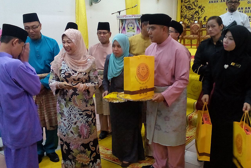 Raja Permaisuri Agong Tuanku Hajah Haminah menyampaikan sumbangan kepada anak yatim pada majlis bantuan sumbangan anjuran YAYSH - Sumber gambar Norazam