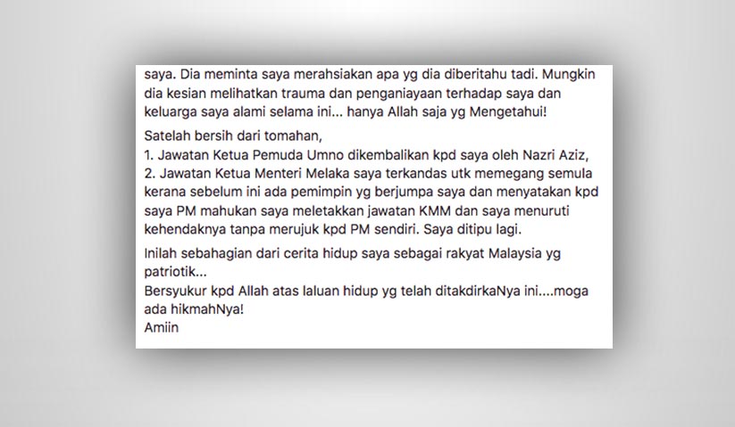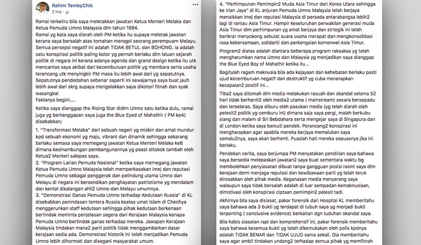 Menurut Abdul Rahim lagi, selepas dirinya dibersihkan daripada pertuduhan itu, beliau kembali memegang jawatan Ketua Pemuda UMNO namun hilang jawatan sebagai Ketua Menteri Melaka.