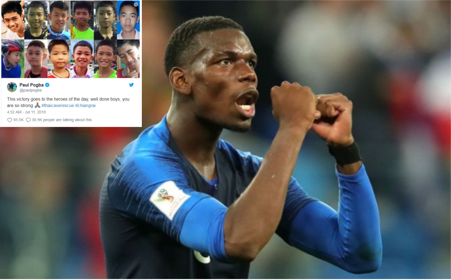 Susulan kemenangan 1-0 di Saint Petersburg, Pogba menerusi akaun Twitter miliknya mengakui kagum dengan kecekalan kanak-kanak Thailand tersebut.